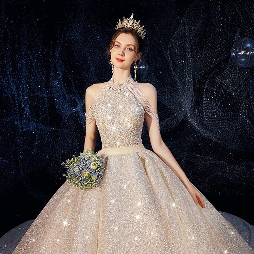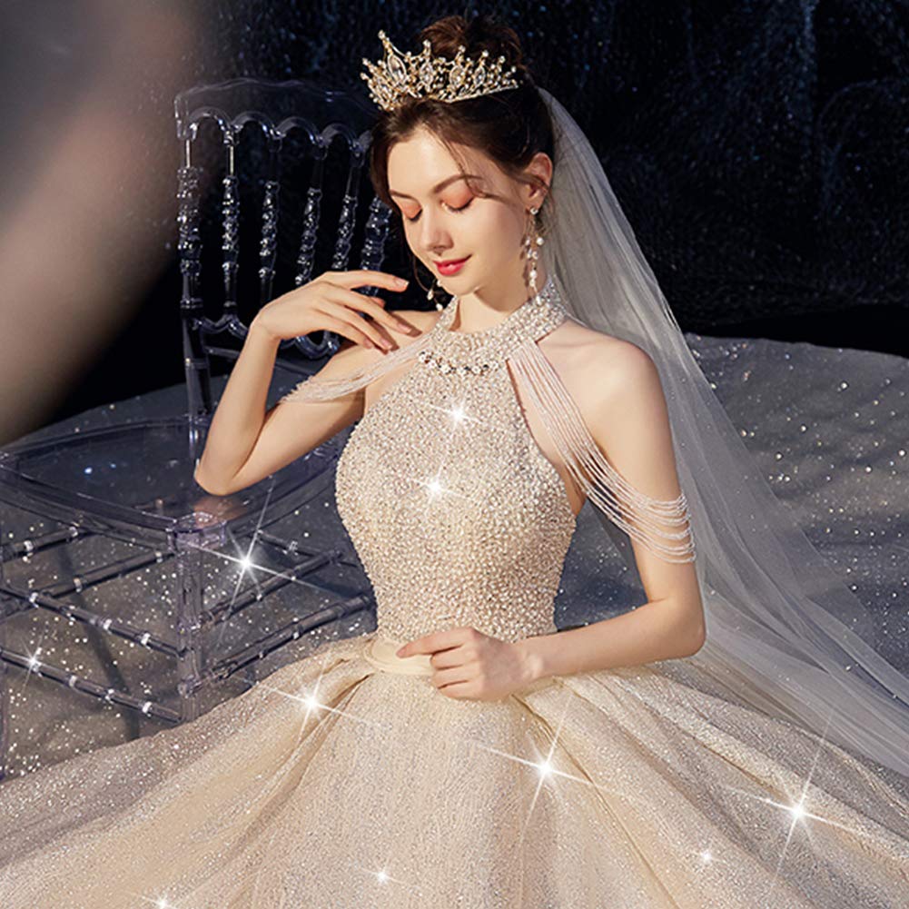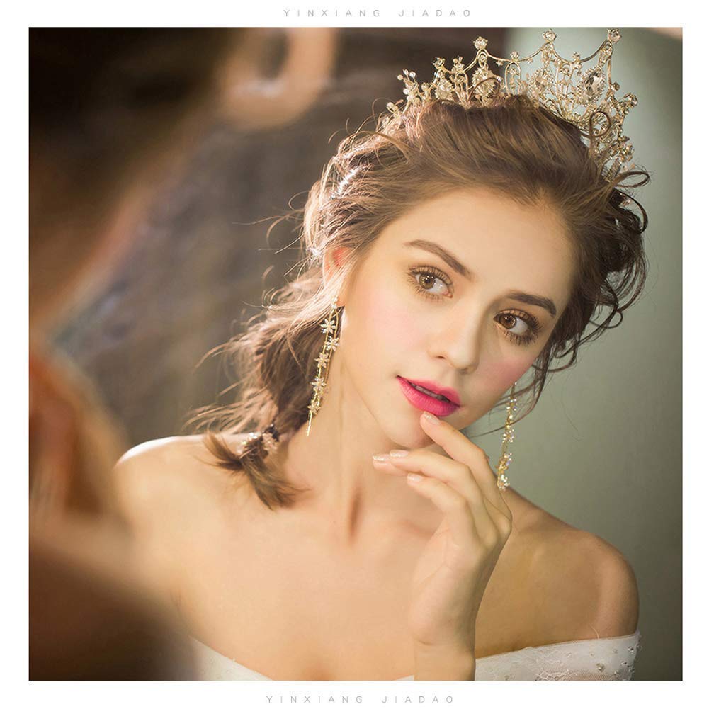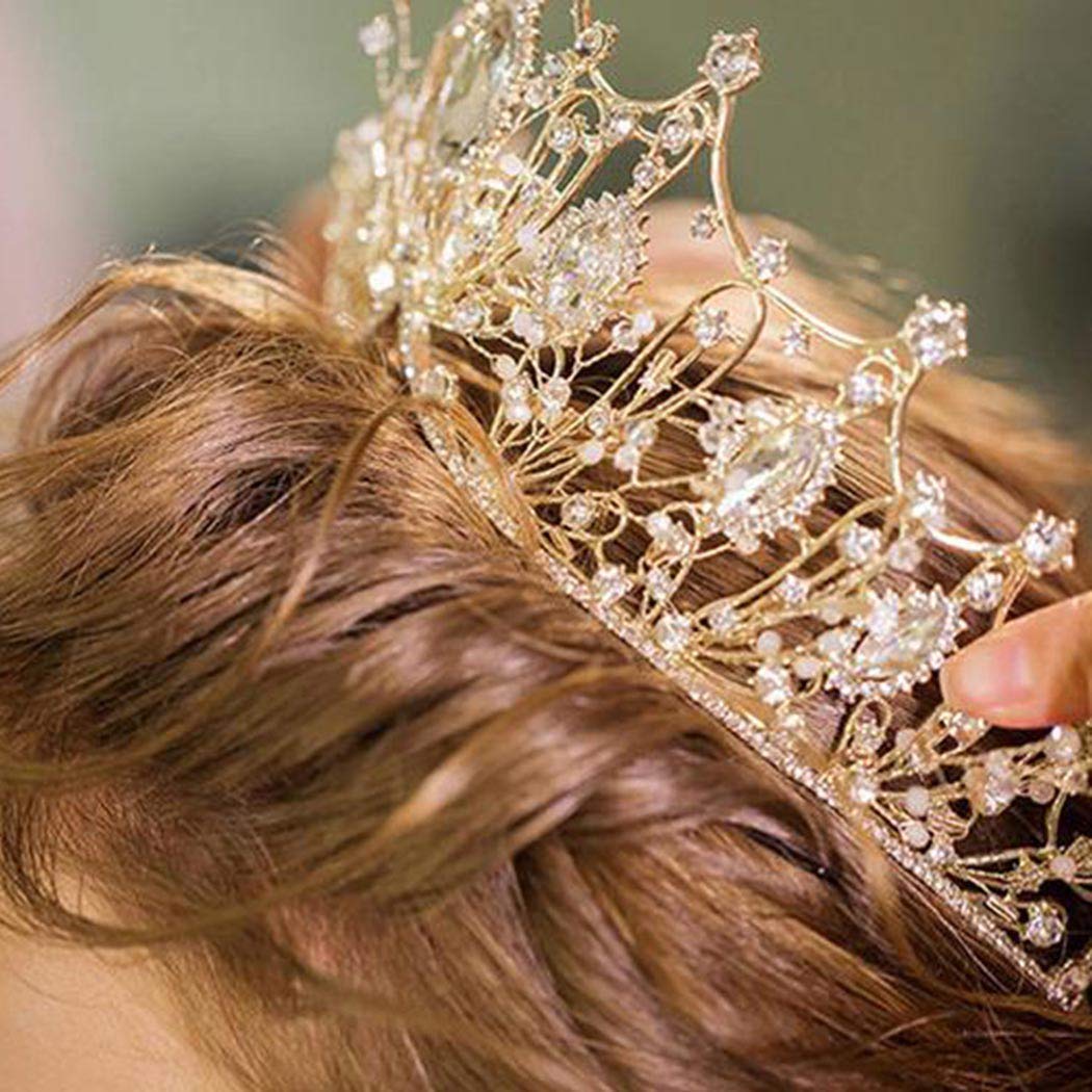 - Material: the design matches with gold-plate metal whose surface is dotted with more than 280 pieces multi-size rhinestone, handmade crystal beads brings out the stunning wedding tiara and crown.