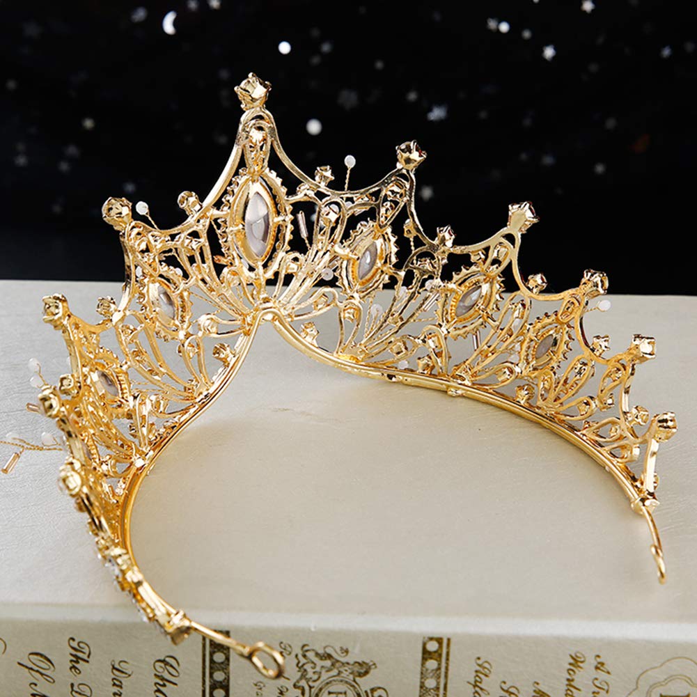 Baroque Queen Crown, Rhinestone Wedding Tiaras and Crown for Bride Handmade Crystal Headband Tiara for Women and Girls – Wedding Halloween Faire Costume Birthday Music Festival Hair Accessories (Gold)