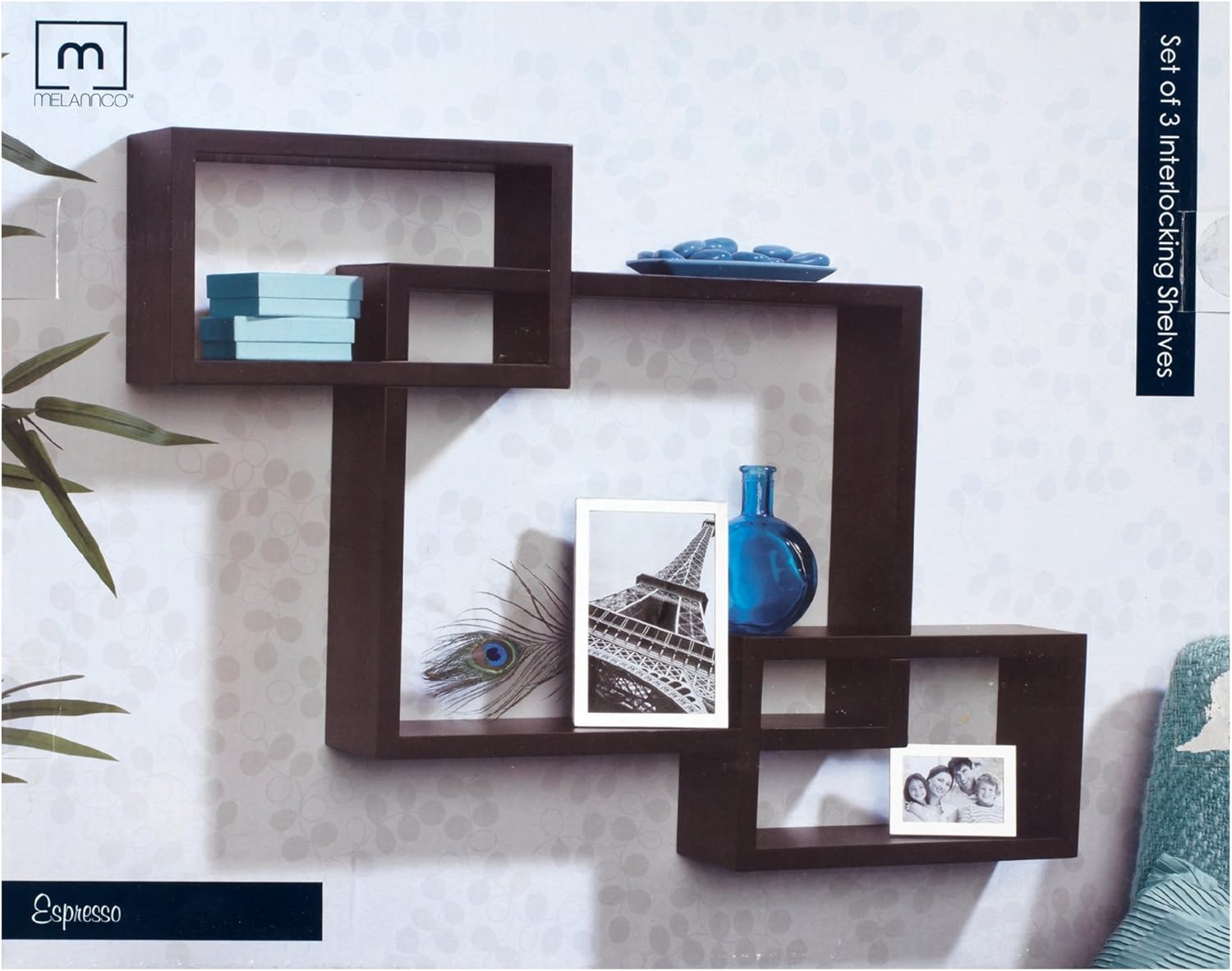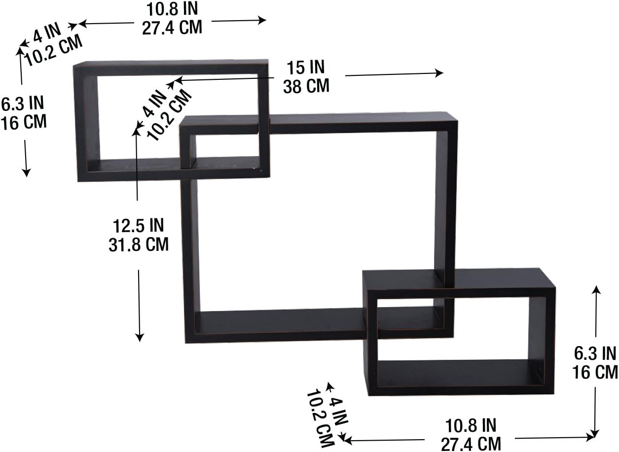 Melannco Interlocking Floating Wall Mount Shelves, Espresso, Set of 3 - 5091208
