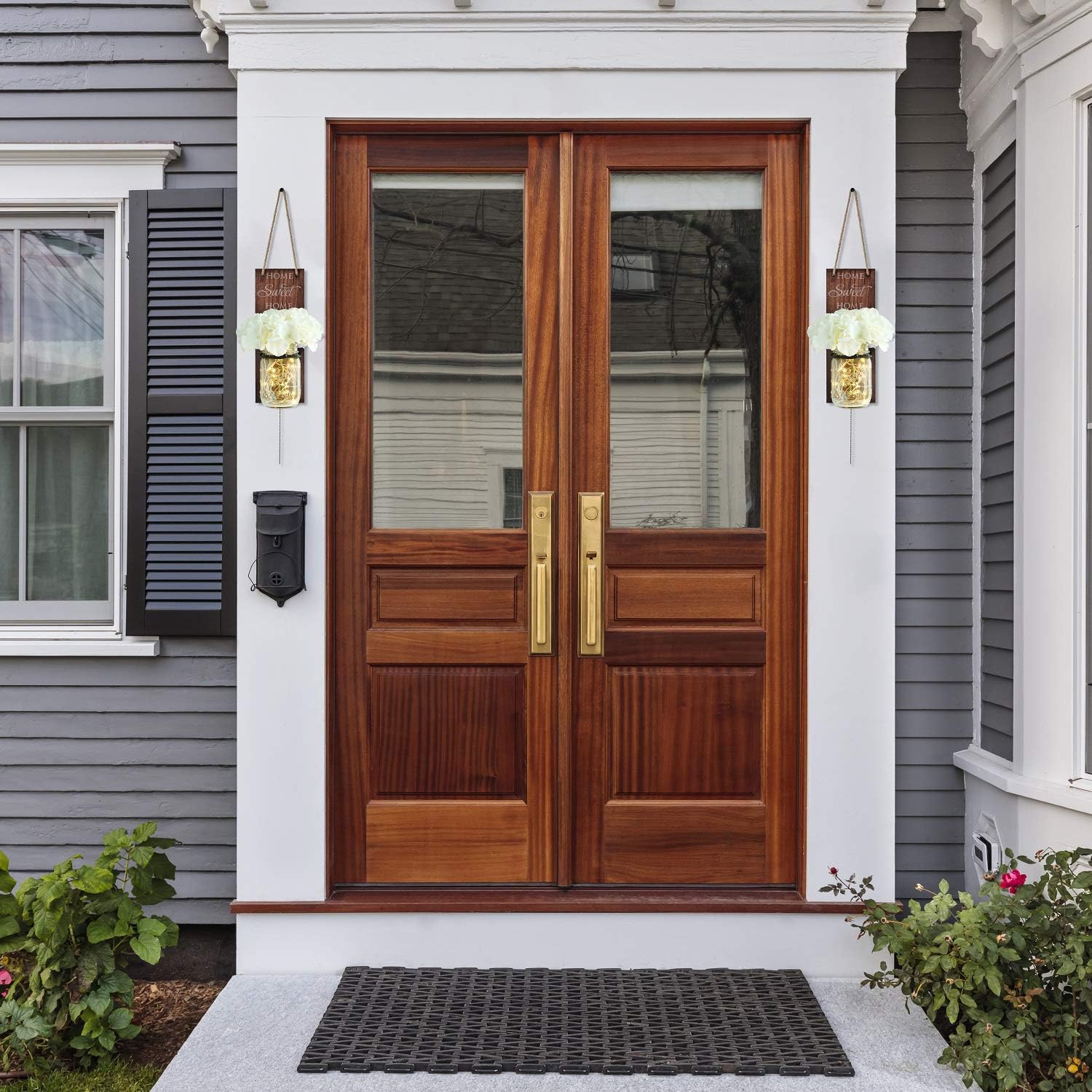 - SPLENDID QUALITY CRAFTSMANSHIP - We only use the finest materials to make Rustic Wall Decor. The hanging decoration includes: 2 mason jars, 2 reclaimed wood backings, 2 strips of LED lights (batteries not included), and 2 faux hydrangea flowers.