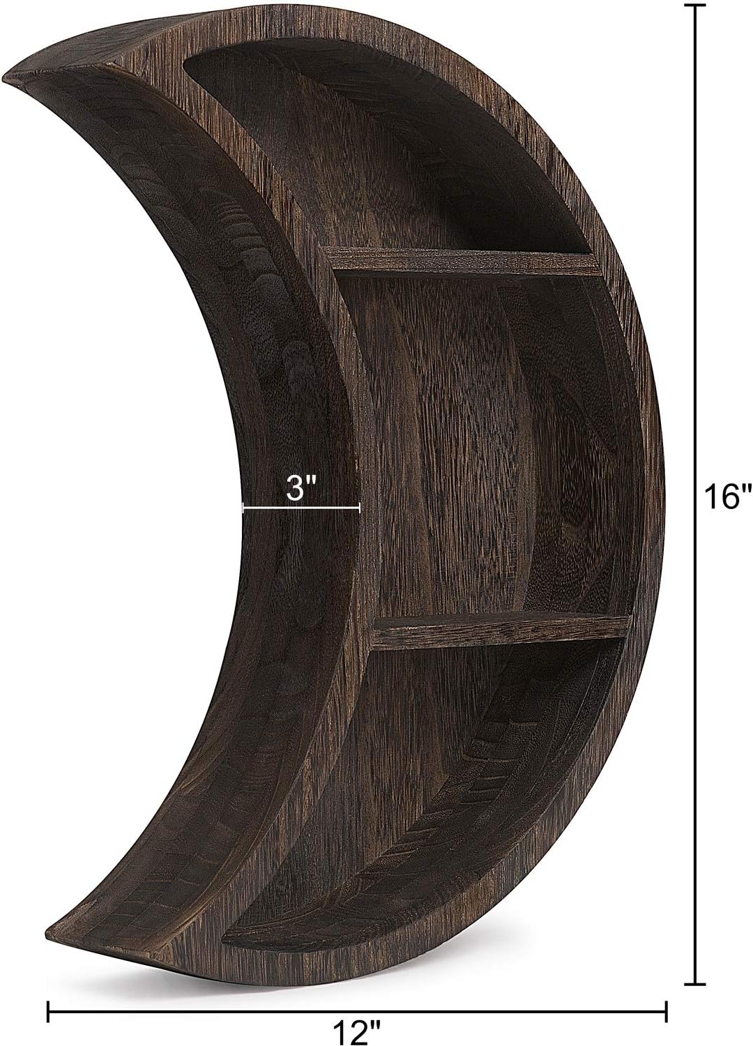 Dahey Wall Mounted Moon Shelf Wooden Floating Shelves Hanging Storage Display Shelf Home Wall Decor for Living Room Bedroom Bathroom Kitchen, 12" L×3" D×16" H