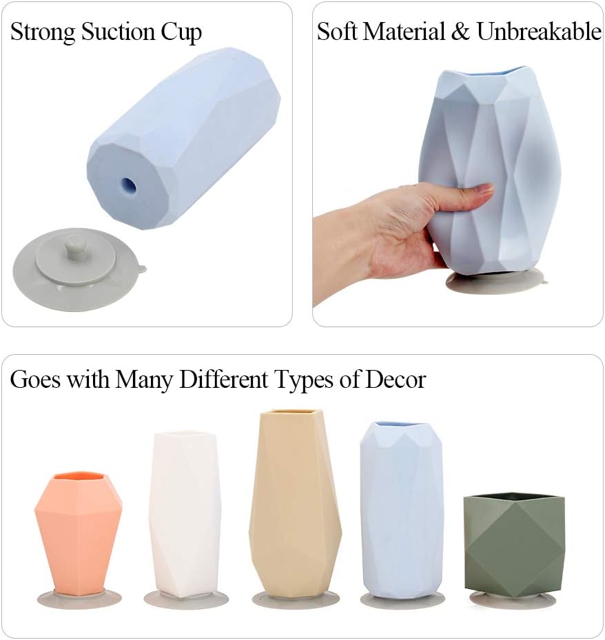 - 🌼【100% SAFE FOR YOUR FAMILY】: The biggest difference in comparing silicone vases with ceramic and glass vases is that they won't break and are absolutely safe for your family; the extra 5 suction cups are included and can be installed according to your needs.
