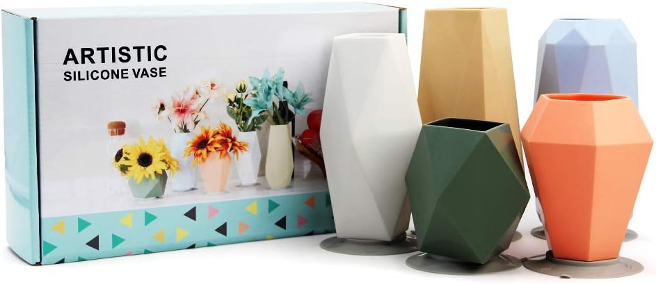 Geometric Silicone Flower Vase Set for Children Flower Arrangement, Modern Decorative Flower Vase for Home Decor, Living Room, Table, Office, Centerpieces, Perfect Little Vases Gifts, Set of 5