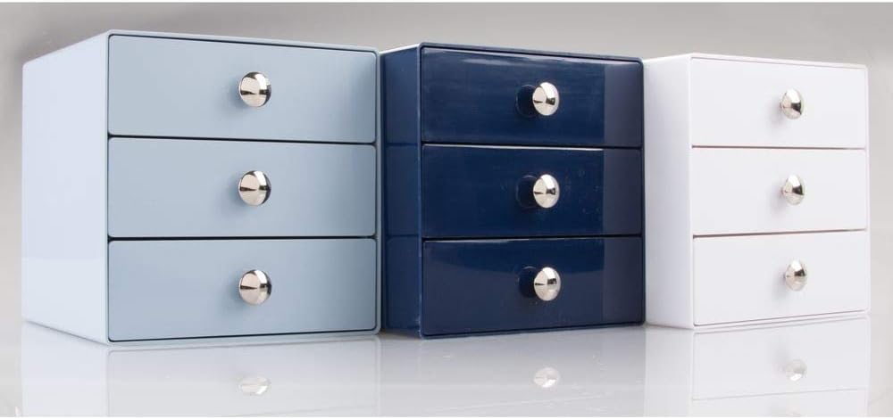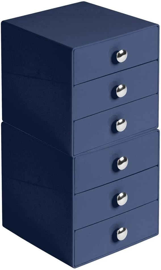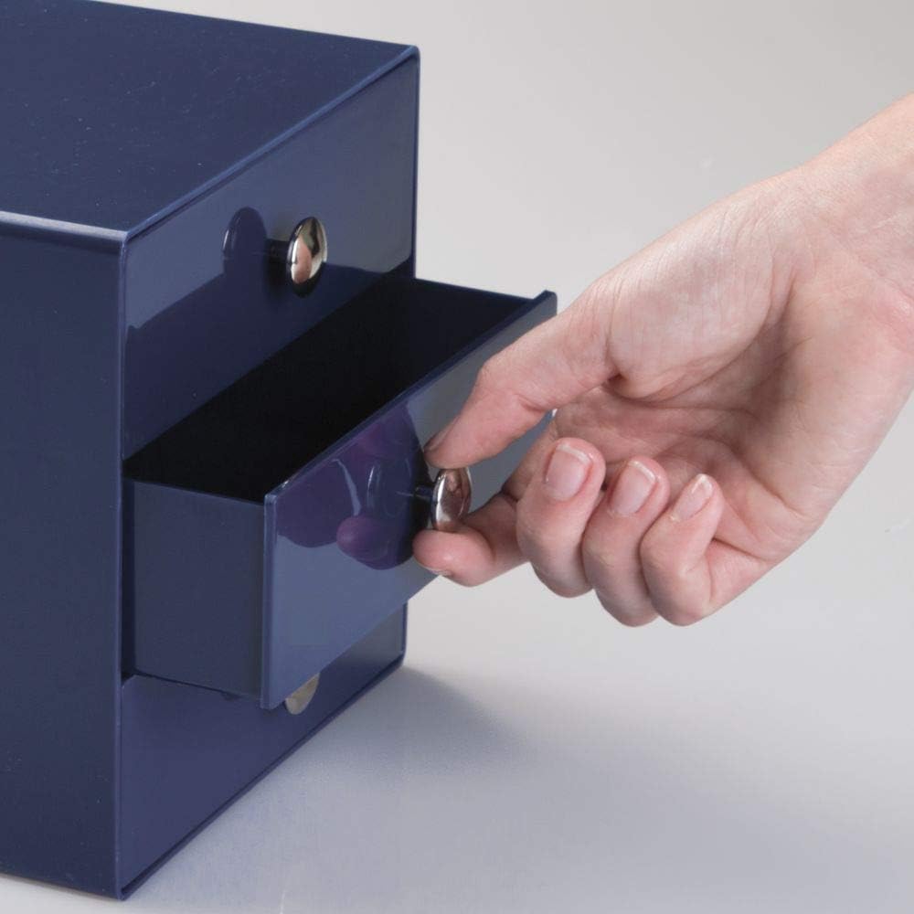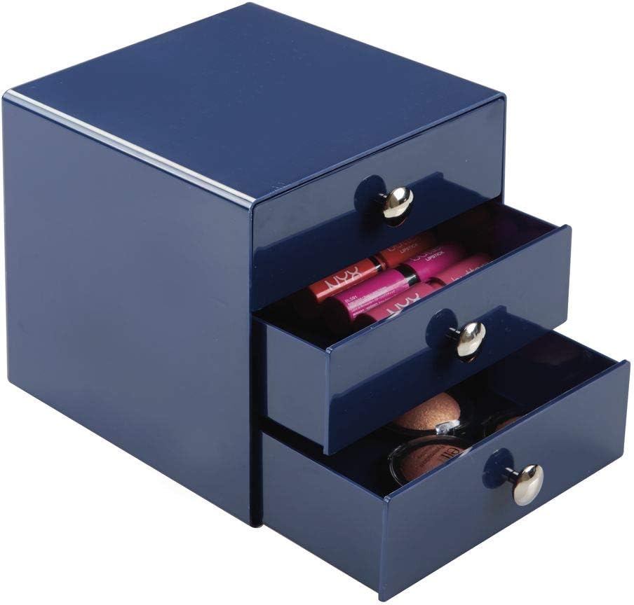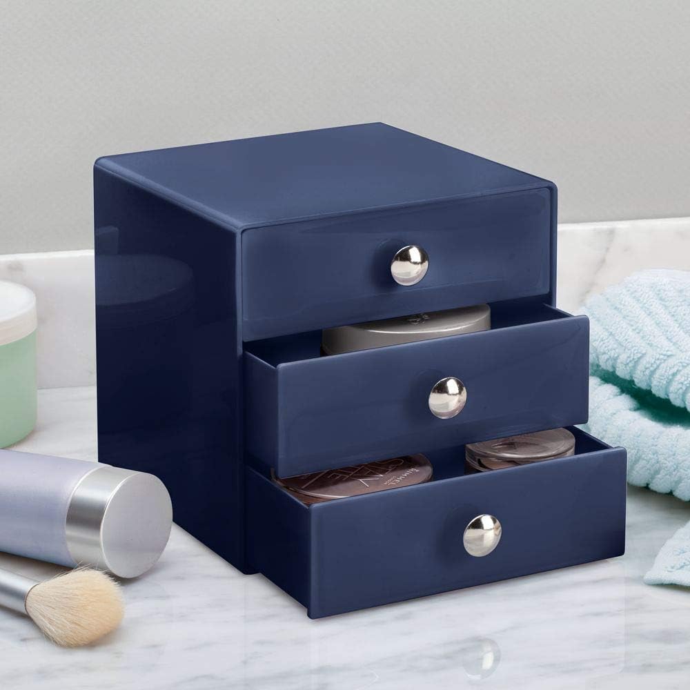 iDesign Plastic 3-Drawer Jewelry Box, Compact Storage Organization Drawers Set for Cosmetics, Dental Supplies, Hair Care, Bathroom, Office, Dorm, Desk, Countertop, 6.5" x 6.5" x 6.5" - Navy Blue